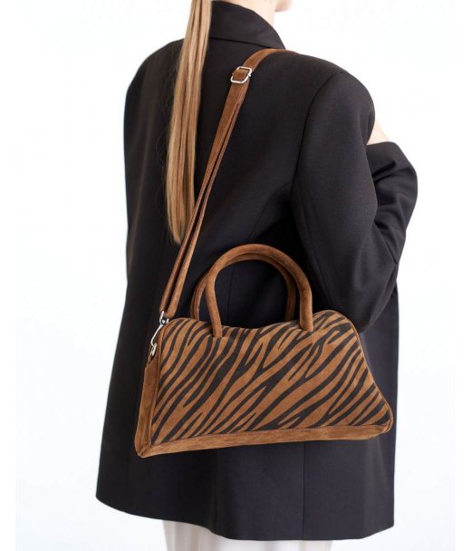Сумка K73152, цвет карамельный, материал сумки натуральная кожа, замша. Сумка открывается при помощи молнии. Внутри сумка имеет один открытый карман и карман на молнии.