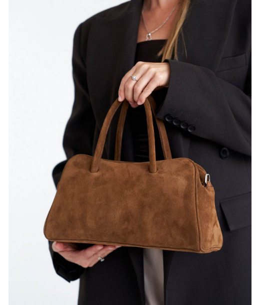 Сумка K73155, цвет шоколадный, материал сумки натуральная кожа, замша. Сумка открывается при помощи ..