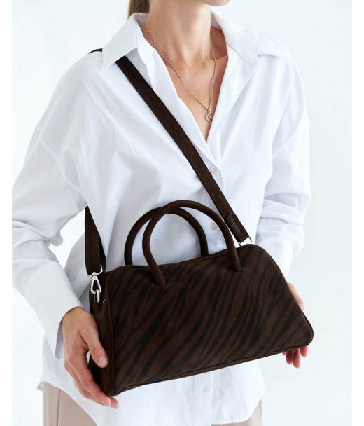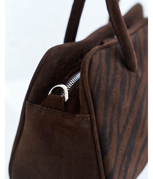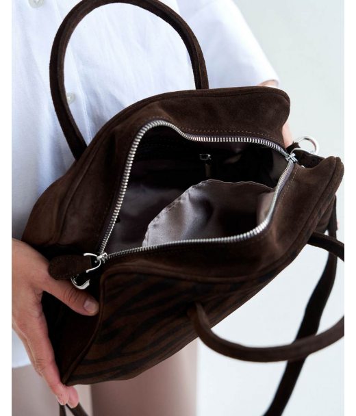 Сумка K73155, цвет шоколадный, материал сумки натуральная кожа, замша. Сумка открывается при помощи молнии. Внутри сумка имеет один открытый карман и карман на молнии.