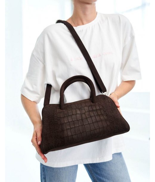 Сумка женская кожаная «Кармел» шоколадный кроко WeLassie дешево