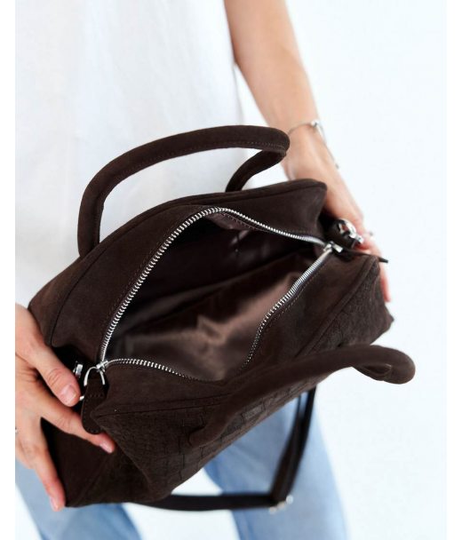 Сумка K73155, цвет шоколадный, материал сумки натуральная кожа, замша. Сумка открывается при помощи ..
