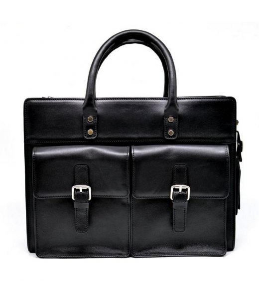 - Лицевую сторону сумки-портфеля украшают два накладных кармана с клапанами и хлястиками.