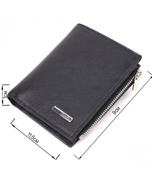 Превосходный компактный кошелек из натуральной кожи высокого качества, изделие классического черного цвета. Внутри есть отделение для купюр, десять ячеек для кредитных карт, монетница на молнии и четыре скрытых кармана. В изделии использована качественная фурнитура, а также прочная фирменная подкладка. Закрывается модель в два сложения на кнопку.