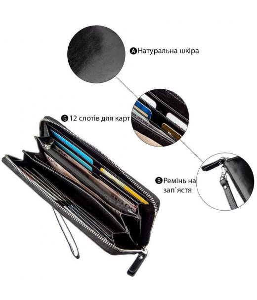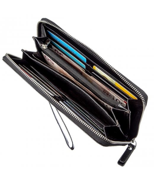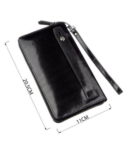 Очень вместительное и практичное мужское портмоне-клатч из высококачественной кожи черного цвета для уверенного в себе мужчины. Имеет все необходимое, чтобы стать Вам незаменимым аксессуаром в повседневной рутинной жизни. Вы с легкостью поместите в него бумажные купюры, монеты, документы и карточки. Такое портмоне непременно подчеркнет высокий уровень своего владельца. Этот клатч можно носить как в сумочке или портфеле, так и просто на запястье с помощью специального ремешка. Если же Вы решите такой аксессуар подарить близкому человеку, то Вам гарантированно будут очень благодарны. Также отмечаем, что упаковано портмоне-клатч в фирменную картонную коробку.