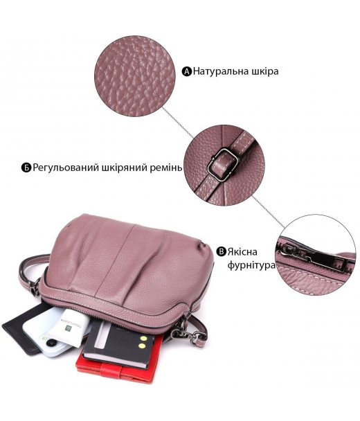 Женская кожаная сумка с эффектной драпировкой Vintage 22898 Пурпурный