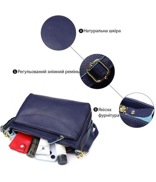 Эта синяя кожаная сумка с формоустойчивым дном — отличный выбор для современной женщины, ценящей сочетание качества, дизайна и удобства.