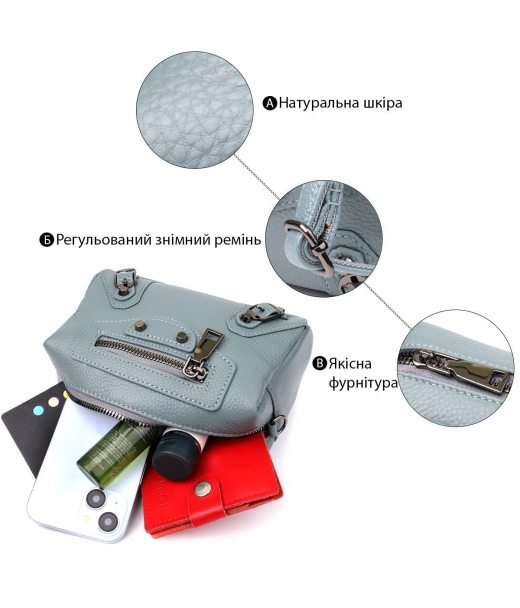 Женская сумка из натуральной кожи с современным декором Vintage 22925 Голубой