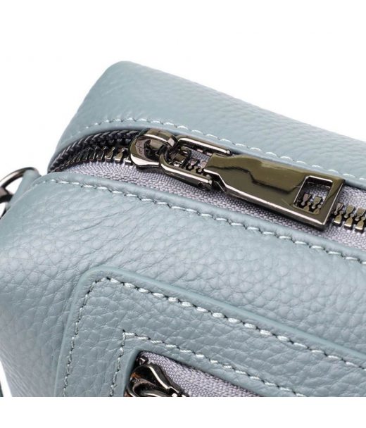 Фурнитура в цвете темного серебра эффектно контрастирует с голубым фоном, подчеркивая современность модели. Благодаря съемному регулируемому ремню, сумку удобно носить через плечо или на плече.