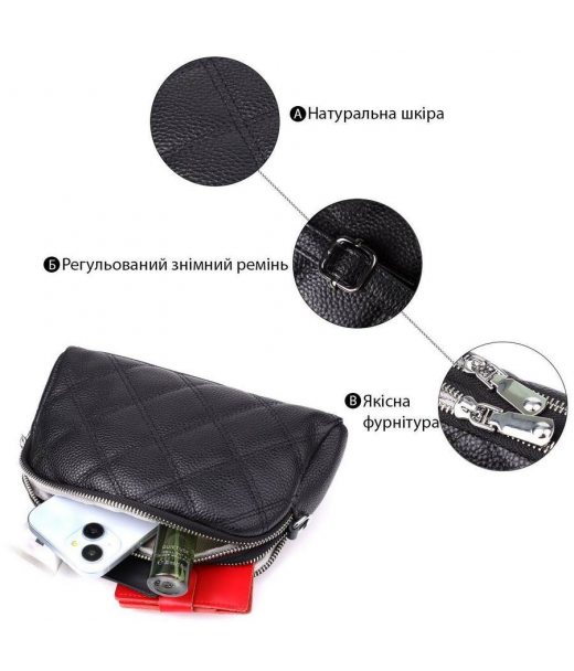 Женская сумка прошитая ромбами из натуральной кожи Vintage 22930 Черный