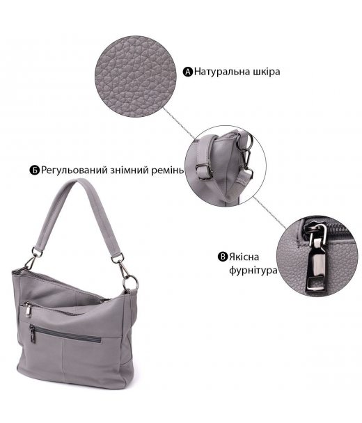 Женская сумка с двумя ремешками из натуральной кожи Vintage 23054 Серый