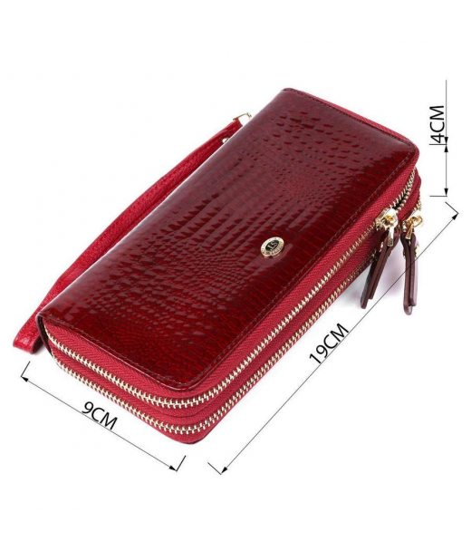 Превосходный вместительный клатч для деловых и прагматичных женщин. Материал изготовления – добротная первоклассная натуральная кожа, покрытая лаком. Имеет гладкую фактуру с имитацией под кожу крокодила. Бордовый цвет изделия смотрится очень женственно и модно. Клатч имеет два отдельных отделения, которые закрываются на металлическую массивную молнию в золотом цвете. Внутри расположено достаточно отделений и карманов для всех Ваших ценностей. Такой аксессуар станет просто неотъемлемой частью Вашего гардероба или восхитительным подарком любимой женщине. Упакован клатч в фирменную картонную коробку.