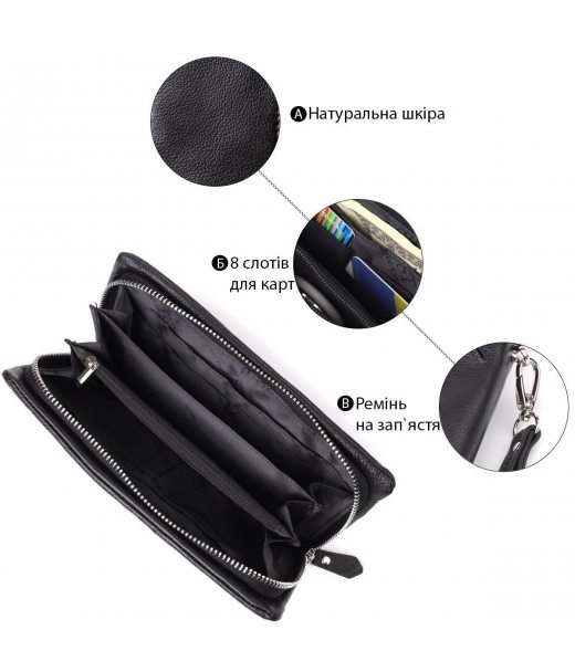 Женский кожаный кошелек-клатч с отделением под телефон ST Leather 23101 Черный