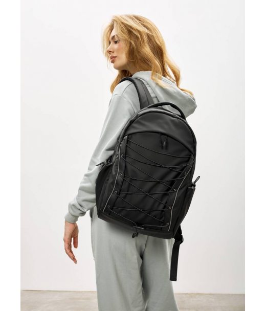 ззовні рюкзака спереду прихована кишеня на блискавці. Дві бічні кишені зі стяжкою. Всередині основного відділення рюкзака є окреме відділення під ноутбук до 16 дюймів (залежить від пропорцій екрану та рамок навколо нього - при замовлені уточнюйте розмір свого гаджету). З іншого боку середини кишеня на блискавці та одна відкрита кишеня. На плечовому ремені є кишеня для кредитних карток, тощо. Передня частина рюкзака доповнена декоративною шнурівкою та світловідбивною вставкою. На спинці додаткова кишеня на блискавці.