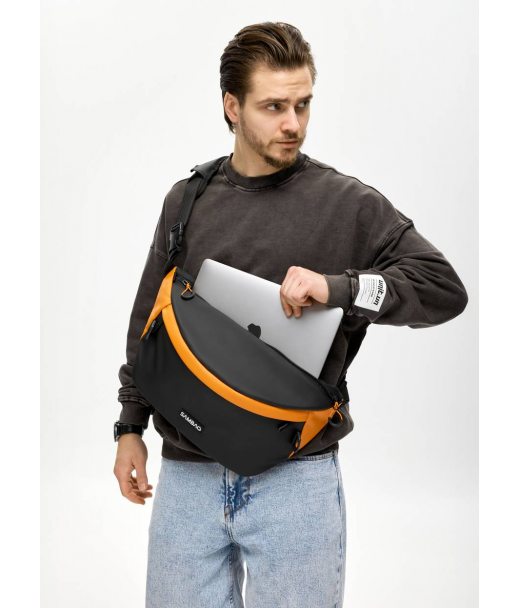 Чоловіча cумка-бананка під ноутбук Sambag Urban Laptop чорно-помаранчева