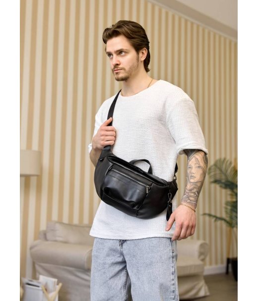 Велика чорна чоловіча поясна сумка
