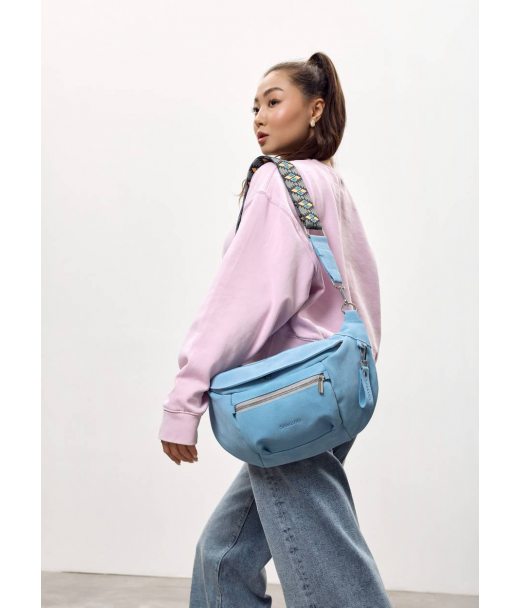 Жіноча замшева сумка бананка через плече Sambag DistrictDart блакитна