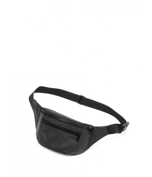 Шкіряна сумка на пояс бананка Sambag Tirso Max чорна шкіра