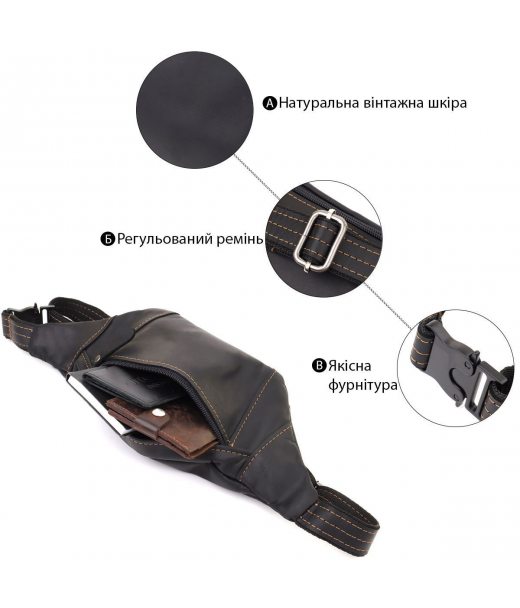 Стильна сумка-бананка для чоловіків із натуральної вінтажної шкіри Shvigel 23120 Чорний