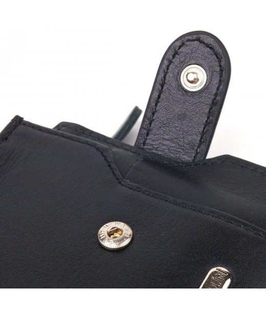 Стильне чоловіче портмоне з натуральної гладкої шкіри. Аксесуар має одне основне відділення з перегородкою, до якого вміщуються купюри всіх номіналів, дев'ять кишень для карток, дві з яких під сіточкою, монетницю на блискавці, п'ять прилеглих кишень, а також автономний блок для карт, який розташований в одній із прилеглих кишень. Закривається аксесуар хлястиком на кнопку. Колір фурнітури – срібло. Шкіряний гаманець є чудовим подарунком для рідних та близьких людей.
