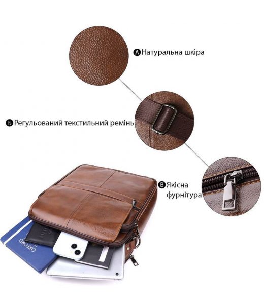 Сумка для чоловіків з ручкою для перенесення в руці з натуральної шкіри Vintage 23028 Коричневий
