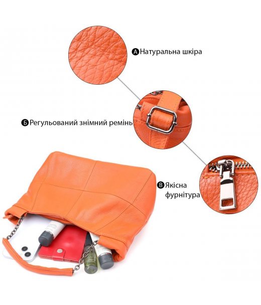 Ця помаранчева шкіряна сумка від бренду Vintage - ідеальний вибір для жінок, які люблять яскраві рішення без компромісів у зручності та якості.