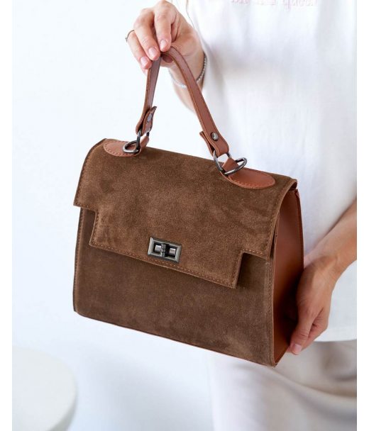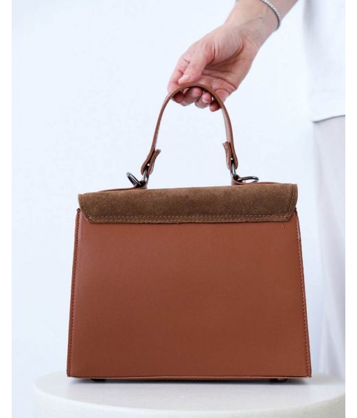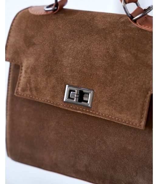 Сумка «Габриэль» зі вставкою з натуральної замші карамельна WeLassie дешево