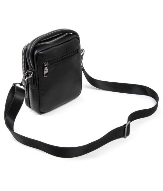 Виготовлена з м'якої натуральної шкіри. Два відділення, закриваються на блискавку. Усередині відділень є відкрита кишеня і бічна кишеня на блискавці. На фасаді і на зворотному боці сумки кишені на блискавці. Регульований плечовий ремінь в комплекті.