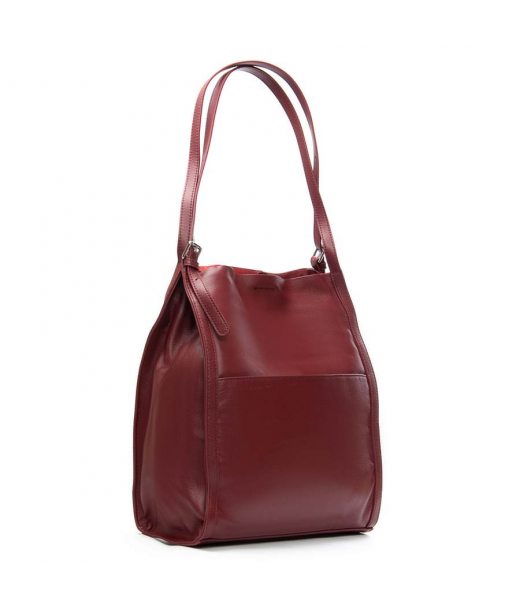 Зачиняється на магнітну кнопку. Всередині знаходиться три відділення, центральне додатково зачиняється на блискавку. Всередині центрального відділення є кишеня на блискавці і відкрита кишеня. Зовні сумки на фасаді є велика відкрита кишеня. Ущільнене дно.