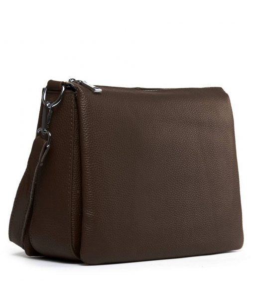 Виготовлена з натуральної м'якої шкіри. Закривається на блискавку. Всередині знаходяться три відділення, розділені кишенею-перегородкою. Середнє відділення додатково закривається на блискавку, а всередині знаходиться бічна відкрита кишеня і кишеня на блискавці. Зовні сумки на зворотному боці розташована кишеня на блискавці.