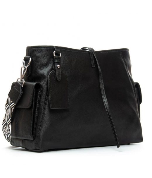 Застібається на блискавку. Всередині знаходиться подвійне відділення, розділене кишенею-перегородкою на блискавці, відкрита кишеня і бічна кишеня на блискавці. Зовні сумки на зворотному боці є велика кишеня на блискавці. На торцях сумки розташовані невеликі кишені під клапанами на магнітній кнопці. Ущільнене дно на металевих ніжках.
