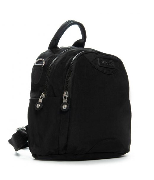 Виготовлений з водовідштовхувального щільного текстилю. Два відділення, закриваються на блискавку. В основному відділенні є кишеня-перегородка на блискавці, велика бічна кишеня на блискавці і відкрита подвійна кишеня. На зворотному боці рюкзака знаходиться кишеня на блискавці. А на торцях є відкриті невеликі кишені.