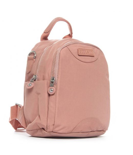 Виготовлений з водовідштовхувального щільного текстилю. Два відділення, закриваються на блискавку. В основному відділенні є кишеня-перегородка на блискавці, велика бічна кишеня на блискавці і відкрита подвійна кишеня. На зворотному боці рюкзака знаходиться кишеня на блискавці. А на торцях є відкриті невеликі кишені.