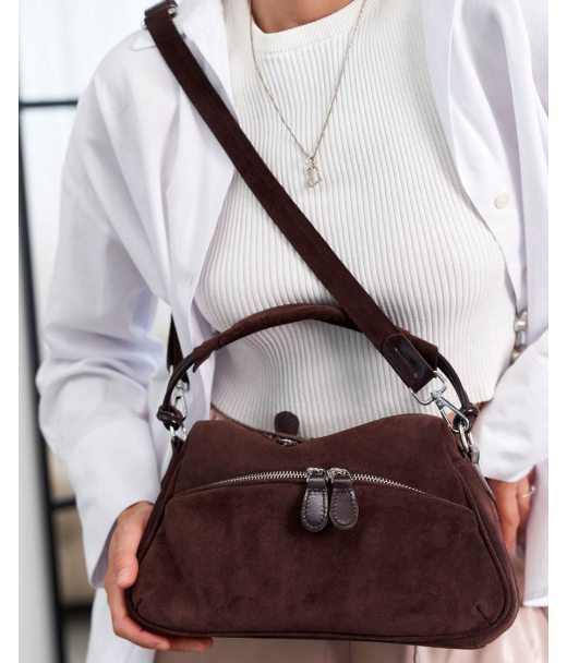 Жіноча сумка K73455, колір коричневий, матеріал сумки натуральна шкіра, замша. Сумка відкривається з..