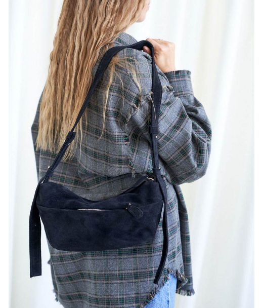 Жіноча замшева сумка K72459, виробник компанія WeLassie, колір чорний, матеріал сумки натуральна замша. Сумка відкривається за допомогою блискавки. Усередині сумка має одну відкриту кишеню та кишеню на блискавці. Зовні є кишеня для дрібних предметів. Сумка має довгий ремінь 100 см.