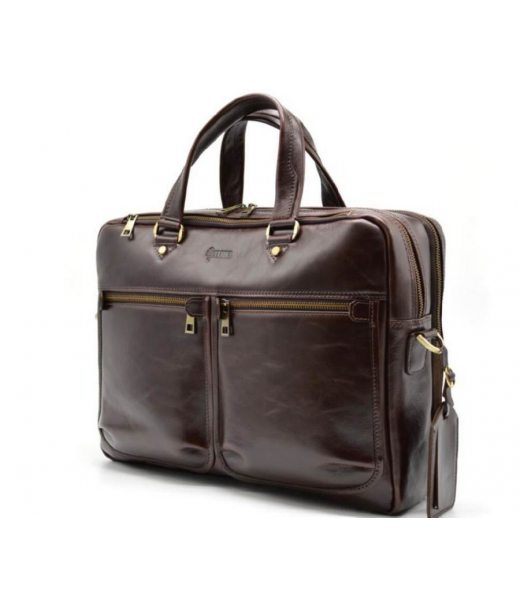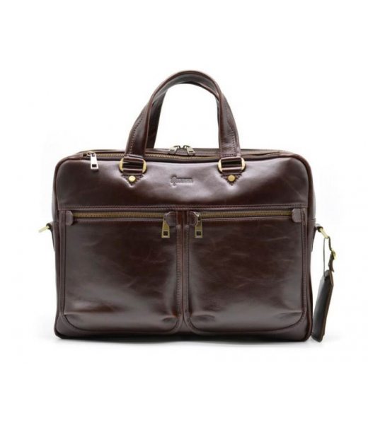 Чоловіча ділова сумка бренду TARWA виготовлена з глянсового телячої шкіри. Практичний і функціональний аксесуар для ділової людини. Виріб складається з трьох основних відділів, застібаються кожен окремо на блискавку. Є безліч внутрішніх кишень на блискавці і без. Зовнішня сторона сумки прикрашена двома практичними, накладними кишенями з блискавкою. Сумка має дві ручки для перенесення в руці, а також є неоплачений широкий шкіряний ремінь, для носіння на плечі.