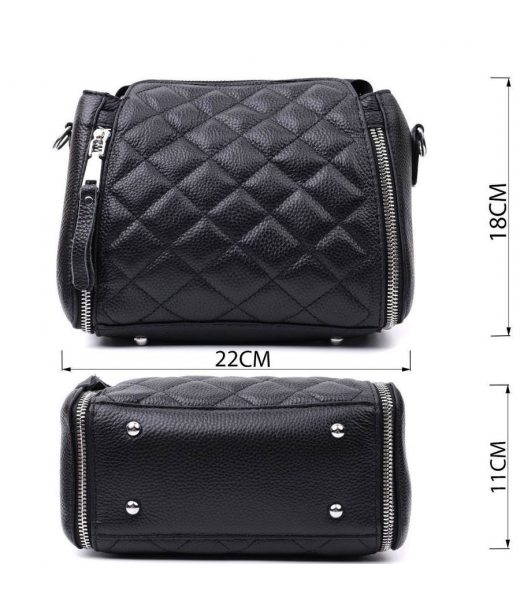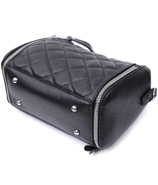 Зручна жіноча сумка з натуральної шкіри флотар, яка невибаглива у догляді та довго носиться. Виріб декорований металевими блискавками з боків, а також прошито ромбами на лицьовій та тильній стороні. У виробі використано металеві ніжки на дні сумки для захисту дна від потертостей та механічних пошкоджень. Аксесуар складається з основного відділення, кишені-перегородки та потайної кишені на блискавці всередині. Носити сумку можна в руці, на плечі та через плече, для цього є шкіряні знімні ремінь та ручка. В аксесуарі використано якісну фурнітуру кольору срібла. Універсальний варіант сумки на вечір, щодня, а також відмінно поєднуватиметься з діловим стилем.