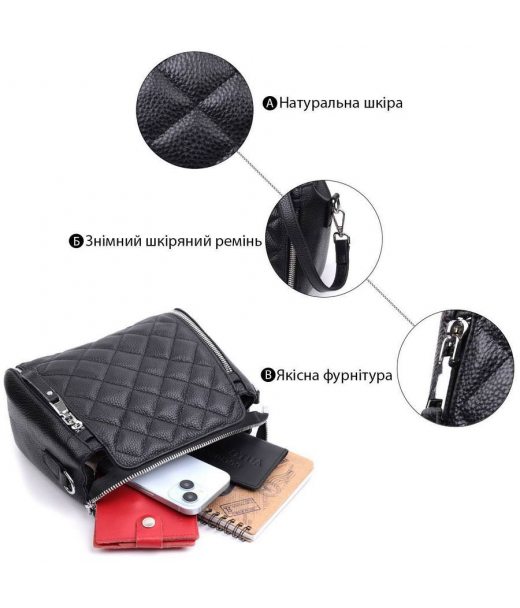 Трендова сумка для жінок у ромби з натуральної шкіри Vintage 22667 Чорна