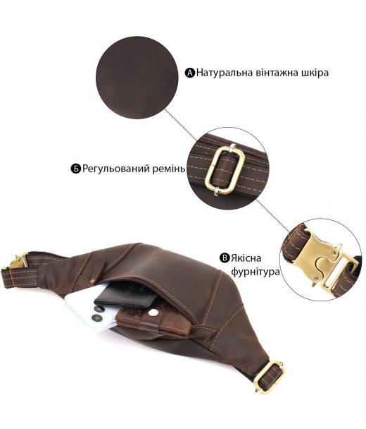 Зручна сумка-бананка для чоловіків із натуральної вінтажної шкіри Shvigel 23121 Коричневий