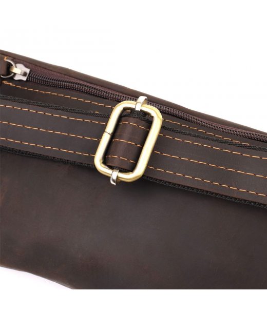 Виконана з міцної натуральної вінтажної шкіри, доповнена надійною металевою фурнітурою та ременем, що регулюється. Ідеальний дизайн робить її стильним рішенням для чоловіка. Лаконічний дизайн і увага до деталей роблять її універсальною: чи то поїздка, прогулянка містом чи ділова зустріч — аксесуар виглядатиме доречно в будь-якій ситуації.
