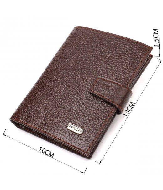 Зручний вертикальний чоловічий гаманець середнього розміру з натуральної шкіри CANPELLINI 21737 Коричневий