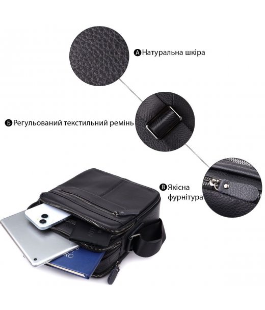Вертикальна чоловіча сумка з натуральної шкіри Vintage 22967 Чорний