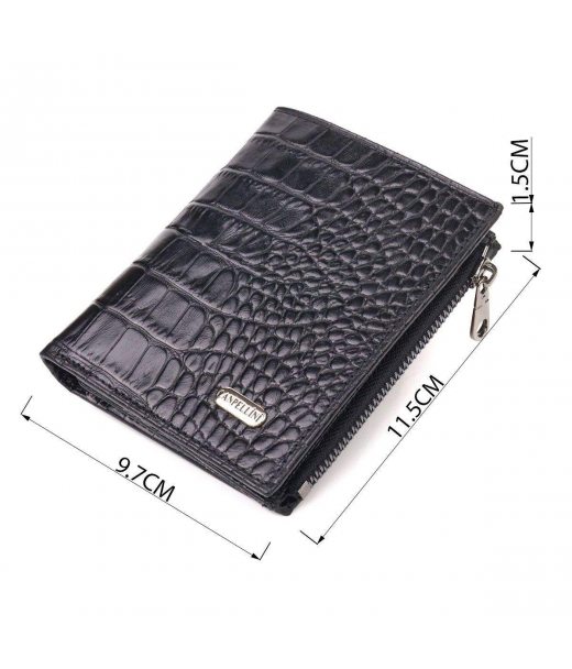 Компактний гаманець унісекс компактного розміру з натуральної шкіри, з тисненням під крокодила. Аксесуар має відділення для купюр, монетницю, що закривається на блискавку, дві приховані кишені та десять осередків для карток, один під сіточкою. Закривається аксесуар у два складання на кнопку. Якісний шкіряний аксесуар завжди вважався показником смаку та достатку, саме такі вироби представлені у нашому магазині, у нас кожен знайде щось для себе.
