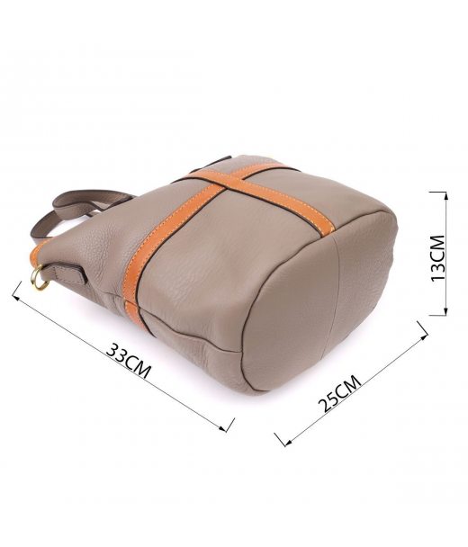 Тверде дно допомагає сумці зберігати форму та надає їй стійкості. Фурнітура кольору жовтого золота ефектно контрастує зі шляхетним сірим відтінком шкіри, додаючи аксесуару витонченості.