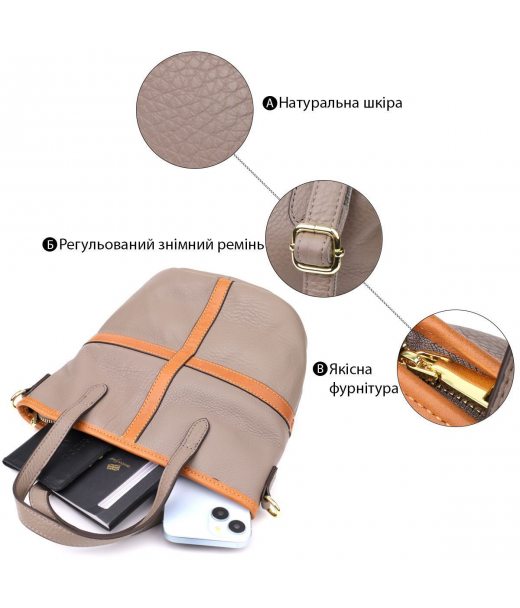 Сіра шкіряна сумка у вигляді трапеції - ідеальний вибір для жінок, які цінують стриманий шик, якість та продуманий дизайн.