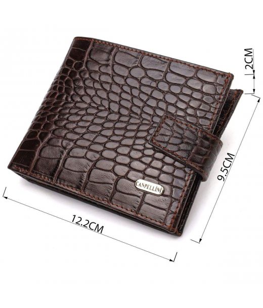 Місткий чоловічий гаманець з натуральної фактурної шкіри з тисненням під крокодила CANPELLINI 21788 Коричневий