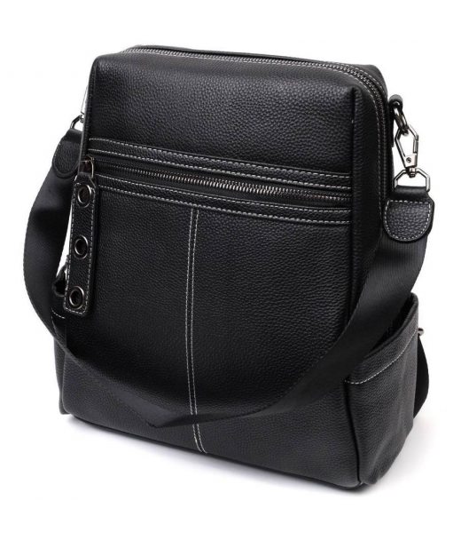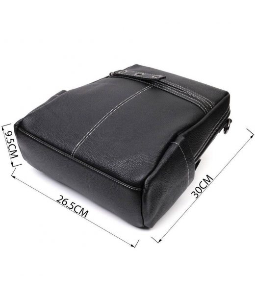 Місткий жіночий рюкзак-сумка прошитий білим рядком з натуральної шкіри Vintage 22314 Чорний