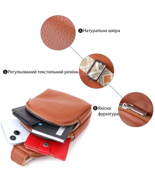 Ця шкіряна сумка-слінг - відмінний вибір для тих, хто віддає перевагу легкості, стилю і функціональності в кожному русі.