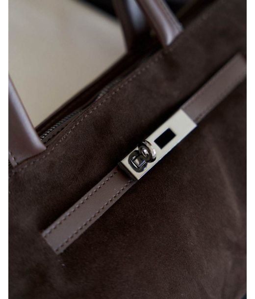 Жіноча сумка «Карен» зі встакою з натуральної замши шоколадна WeLassie дешево