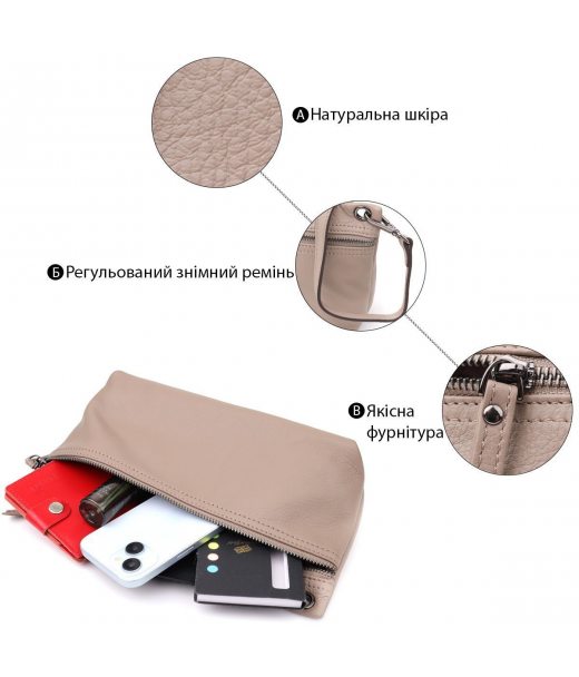 Модель виготовлена з натуральної шкіри високої якості, що забезпечує не лише презентабельний вигляд, але й довговічність. Усередині — одне основне відділення на блискавці та потайна кишеня, яка підійде для зберігання дрібниць та важливих предметів.