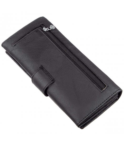 Шикарний жіночий гаманець з висококласної натуральної шкіри, яка порадує Вас своєю м'якою і ніжною фактурою. Колір цього гаманця чорний, який відмінно підійде для прагматичних та ділових жінок будь-якого віку. В даному аксесуарі є чотири великих відділення для купюр і документів, відділення на блискавці для різних цінностей, кишені для кредитних і візитних карток, а також на тильній стороні є відділення для монет або інших дрібниць, які вимагають швидкого доступу до них. Закривається гаманець на зручну і практичну кнопку. Упаковано виріб у білу щільну картонну коробку з фірмовим логотипом.